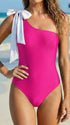 Elegant Bow Tie Contrast One Shoulder Cutout One Piece Swimsuit