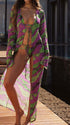 The bold striped cover-up is a tropical delight. Deep V-neck and tie-front adjust to your perfect fit, while long sleeves offer light coverage. Breezy, airy chiffon floats beautifully over over our sexy striped bikini, giving you an instantly chic, vacation-ready look.