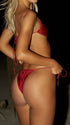Glossy Garnet Gem Tie Side Ruched Brazilian Two Piece Bikini Set
