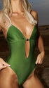 Glossy Gem Deep V Cutout High Cut One Piece Swimsuit