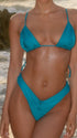 Glossy High Leg Cheeky Scrunch Halter Triangle Two Piece Bikini Set