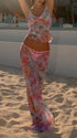 Nautical Striped Print Sheer Mesh Swim Cover Up Set