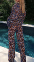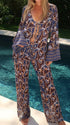 Navy Print Tie Front Wide Leg Chiffon Swim Cover Up Set