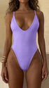 Plunge V Neck Brazilian Cheeky Sexy High Cut One Piece Swimsuit