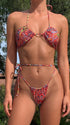 Slay the beach in this fire strappy two-piece! Choose from classic hues, retro dots, or boho chic prints. Its ruched swim top, with removable pads and a halter tie, lifts and defines like a dream. The Brazilian scrunch cheeky swim bottom wrap and tie at your waist, accentuating your curves.