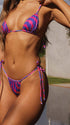 Graphic bold stripes, sleek lines, and a confident fit. This Brazilian two-piece swimsuit features a sliding triangle swim top with soft pads, a halter tie, and a back tie, paired with a tie-side, scrunch cheeky swim bottom to deliver a sporty, sexy fit made for beach days.